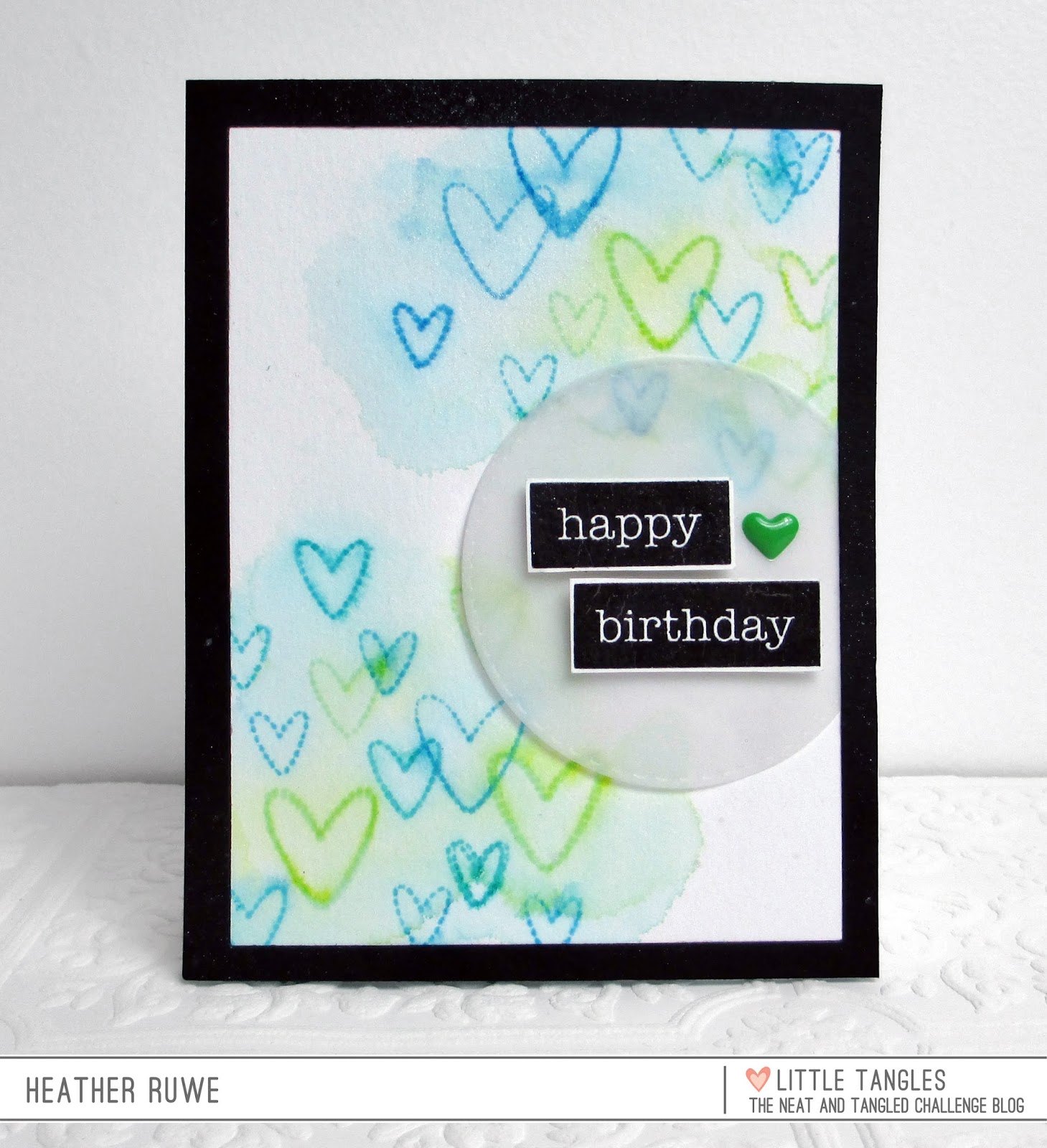 Did you know that Neat and Tangled is turning three this month! In honor of that, the Little Tangles Challenge theme is Birthday. Here’s the card I created for the celebration…