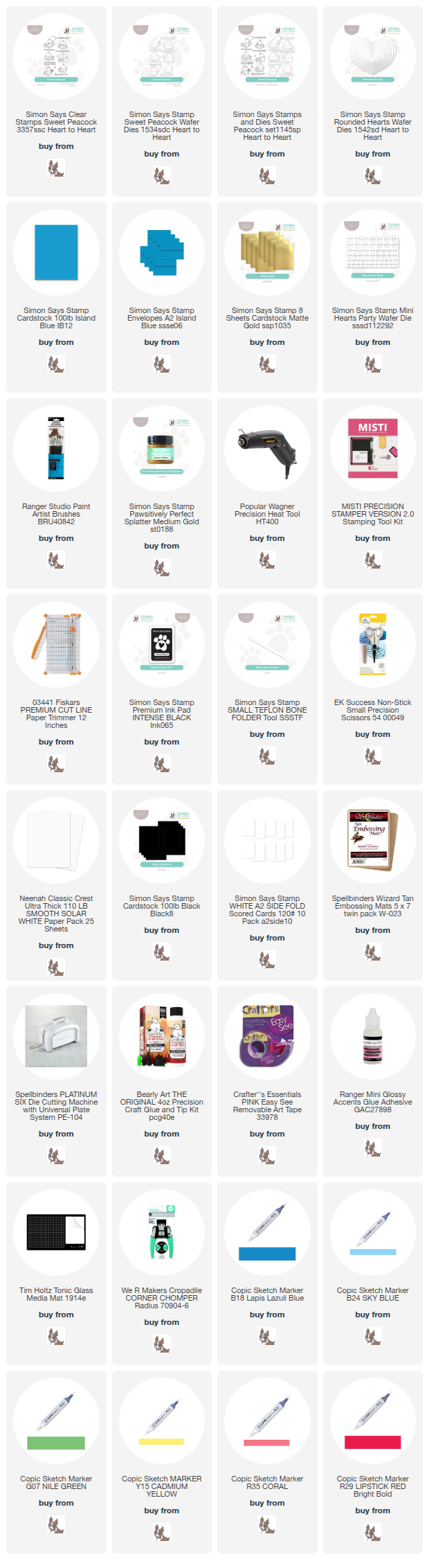 To create this card, I started by embossing THESE hearts on a piece of cardstock using THIS mat in my die cut machine. I flicked some of THIS on the background using a paintbrush to add some interest to the background. Next, I stamped THIS image and sentiment and used THESE coordinating dies to cut them out. I adhered the peacock on with one of THESE action wobblers to make him wiggle.